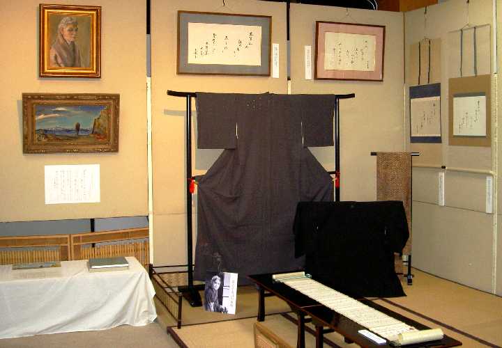 「喜志子の肖像」と「歌人望郷」(油彩画 河越虎之進)、額、幅、喜志子の紋付羽織・着物・帯 ほか