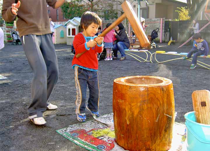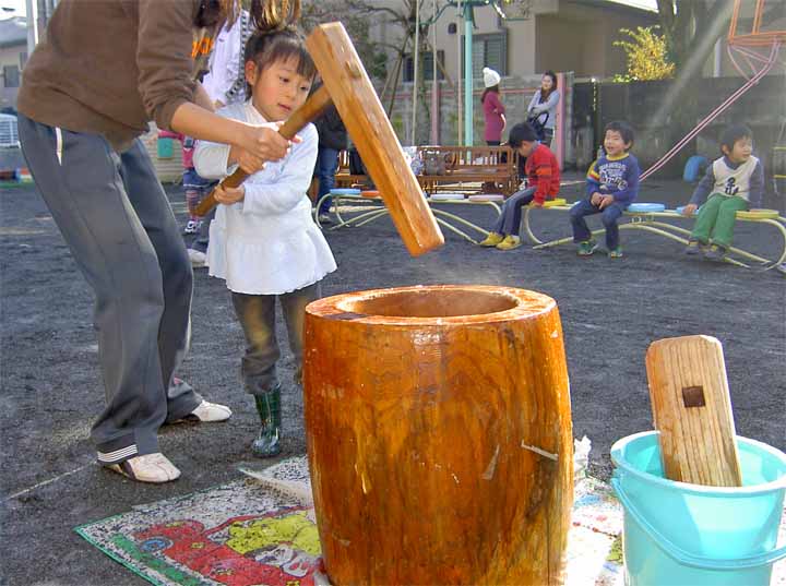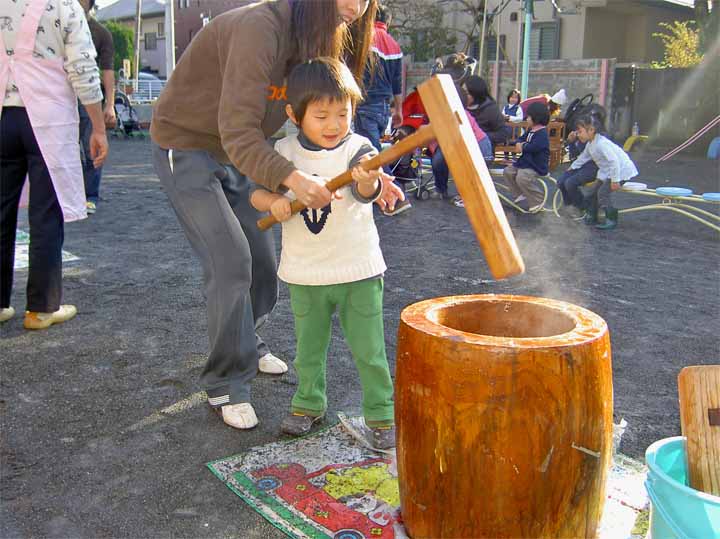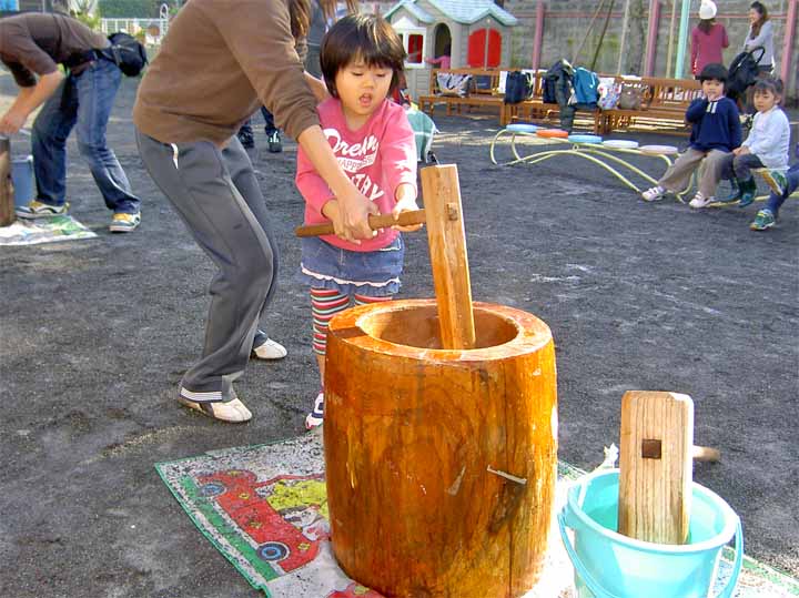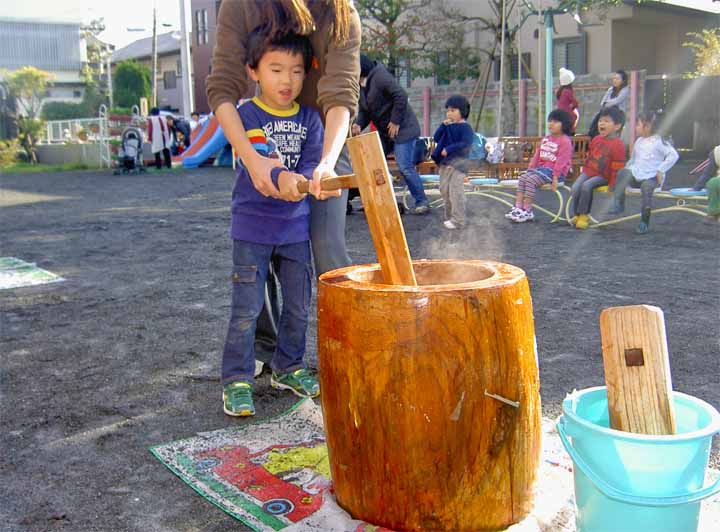 お 餅 を つ く 園 児 た ち (年 少)(2)