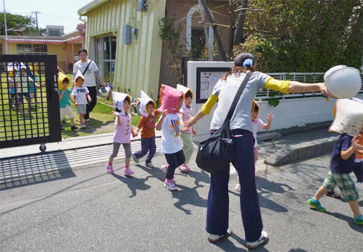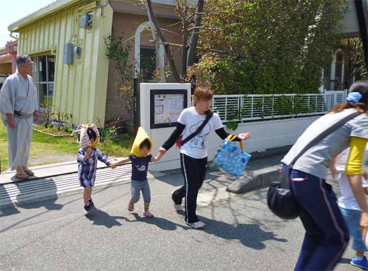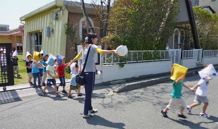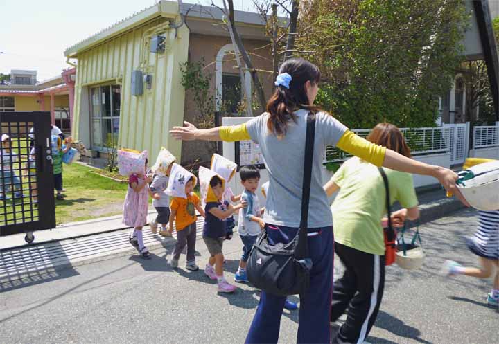 津波に備え 乗運寺に隣接する4階建の高いビルへ避難する 園児たち(2)