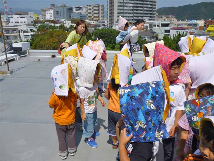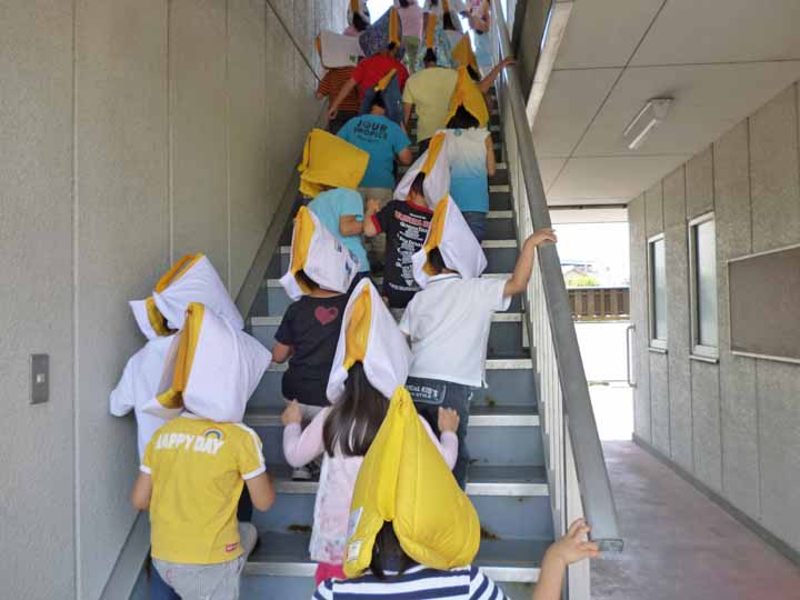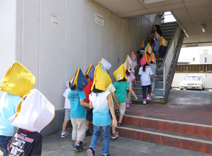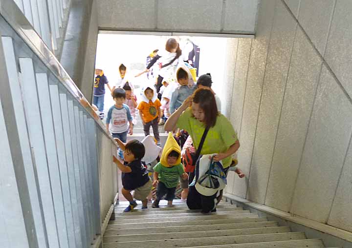 津波に備え 乗運寺に隣接する4階建の高いビルへ避難する 園児たち(4)