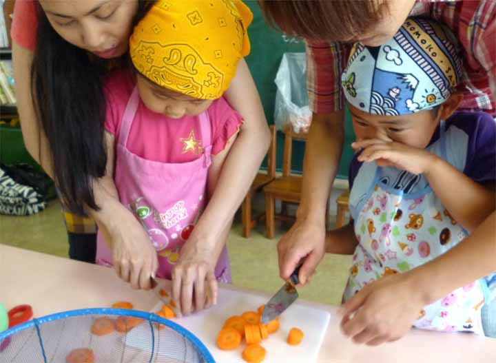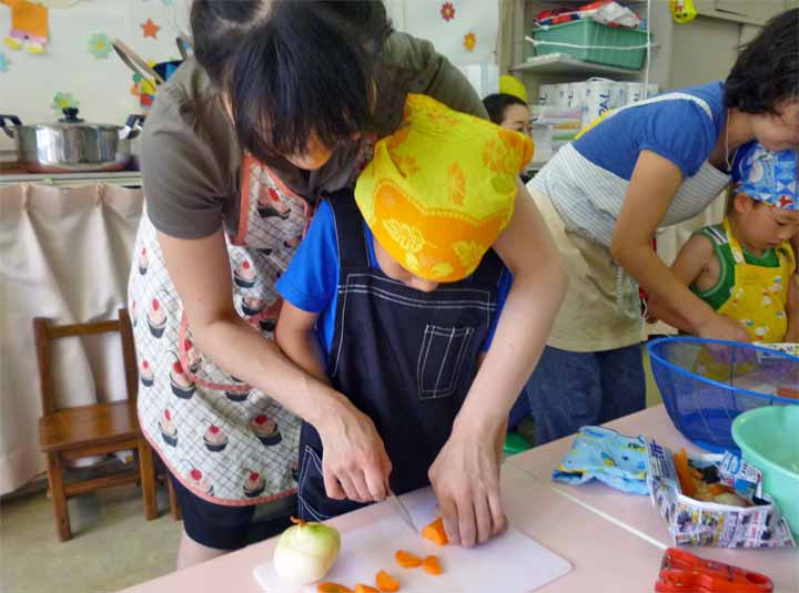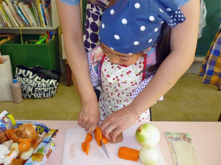 保護者の皆さんとカレーをつくる 年長園児たち(3)