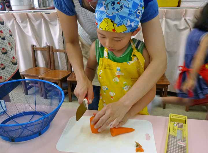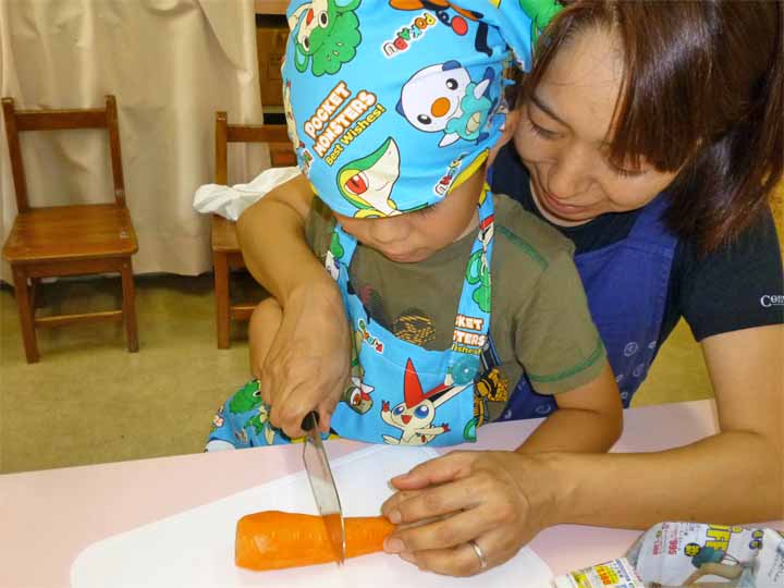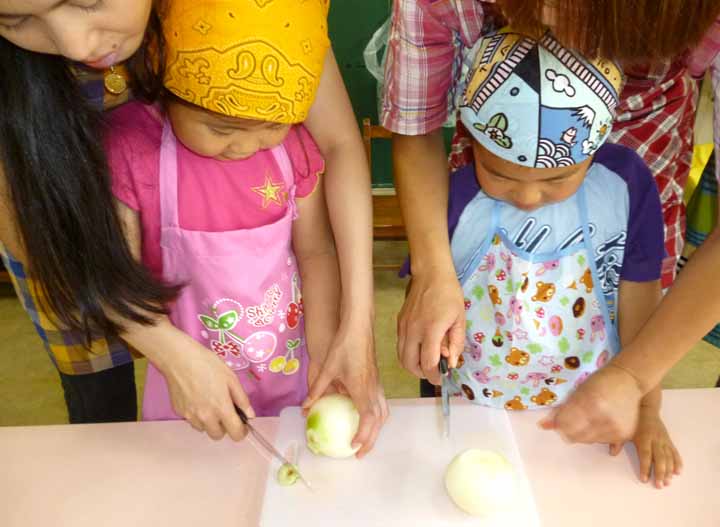 保護者の皆さんとカレーをつくる 年長園児たち(4)