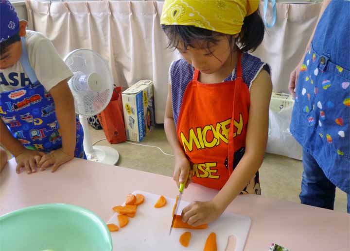 保護者の皆さんとカレーをつくる 年長園児たち(5)