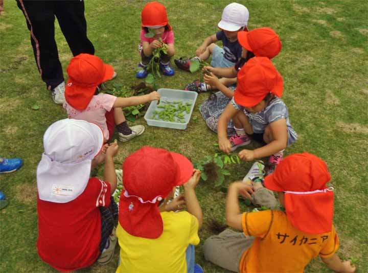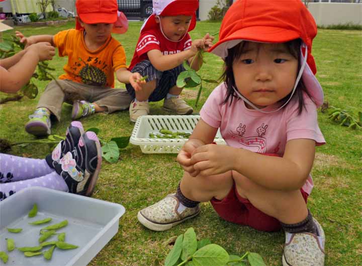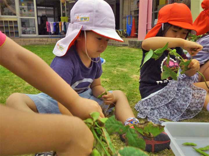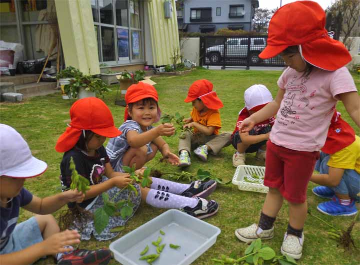 枝 豆 を 収 穫 す る 園 児 た ち(3)