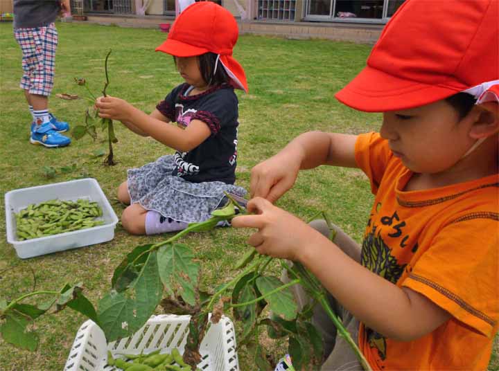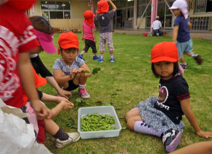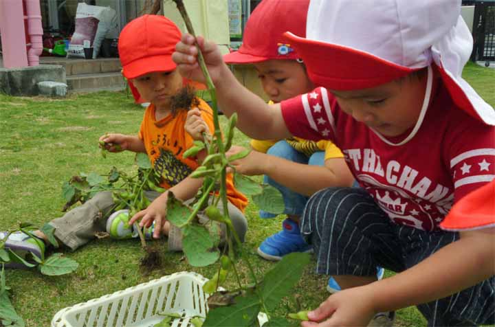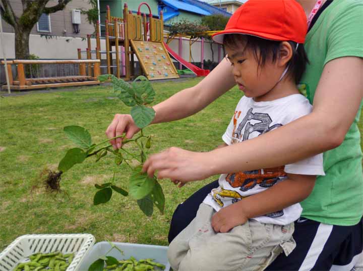 枝 豆 を 収 穫 す る 園 児 た ち(4)