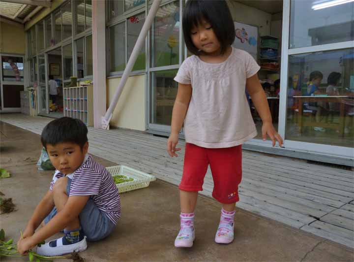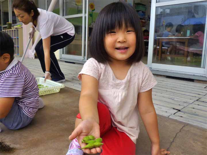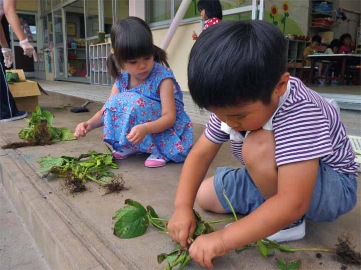 枝 豆 を 収 穫 す る 園 児 た ち(7)