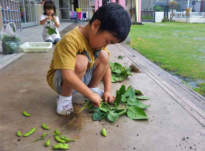 枝 豆 を 収 穫 す る 園 児 た ち(8)