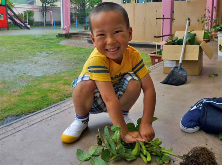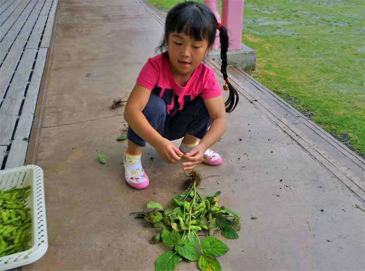 枝 豆 を 収 穫 す る 園 児 た ち(9)