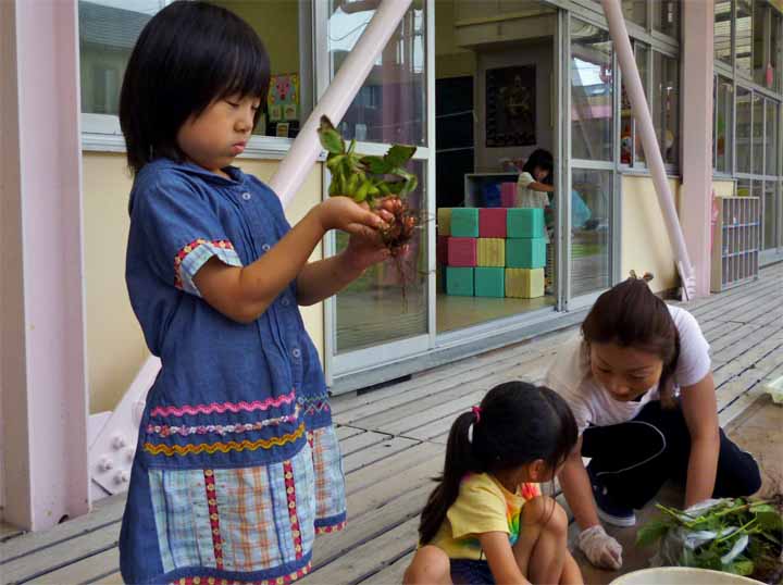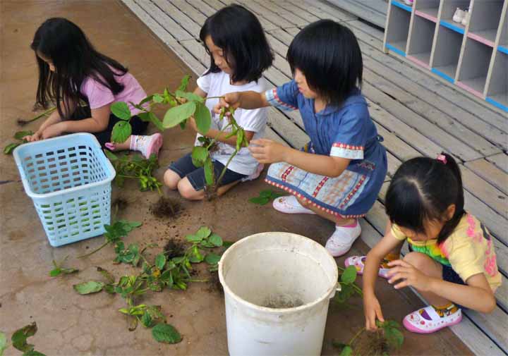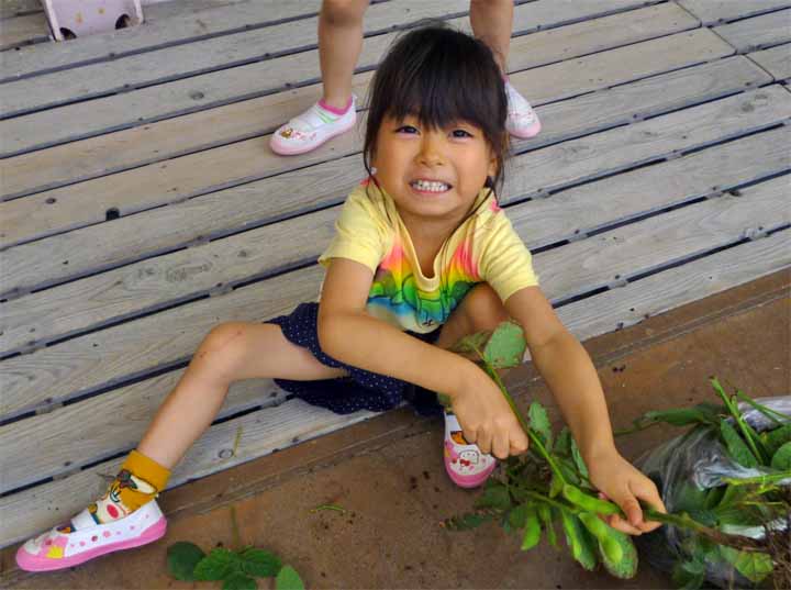 枝 豆 を 収 穫 す る 園 児 た ち(10)