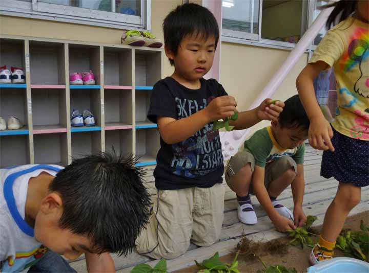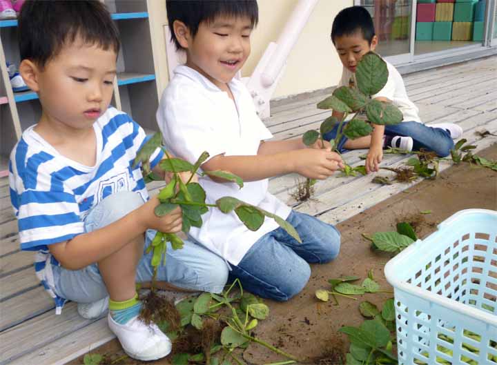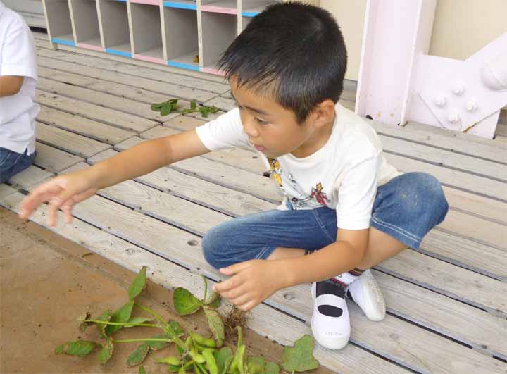 枝 豆 を 収 穫 す る 園 児 た ち(11)