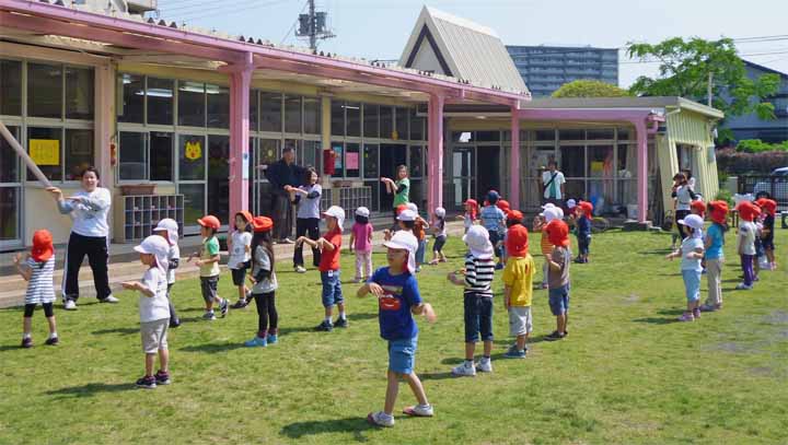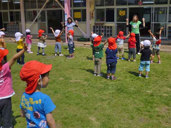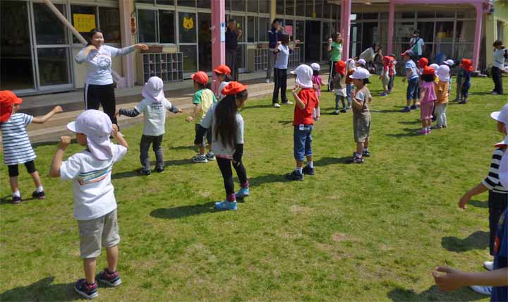 園 庭 で 朝 の 体 操 を す る 園 児 た ち(3)