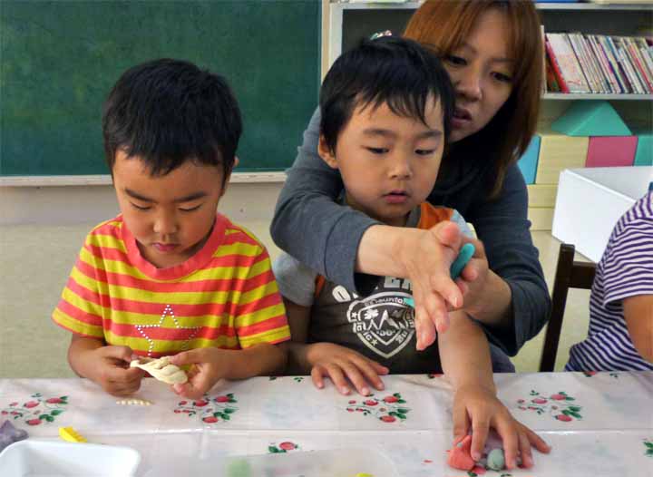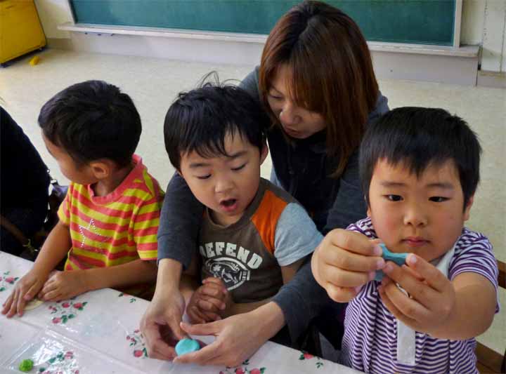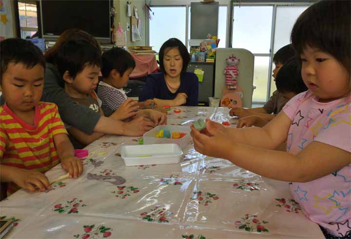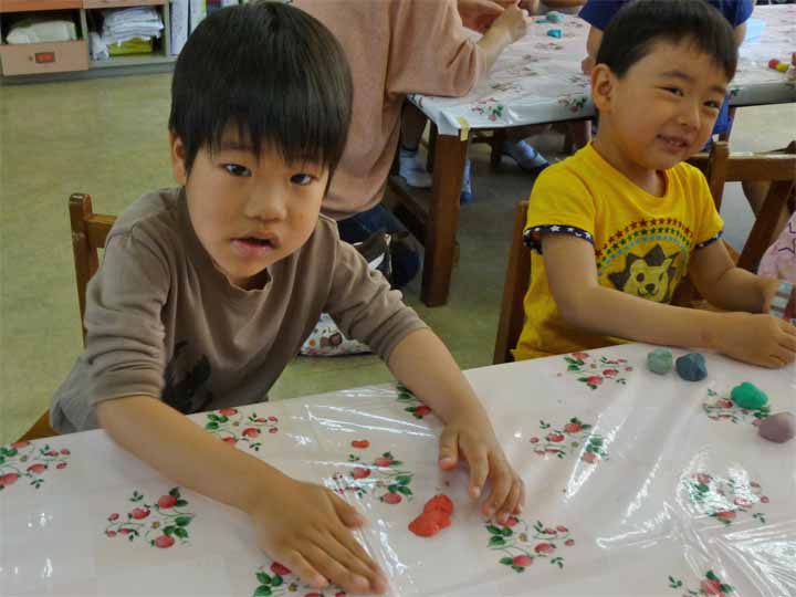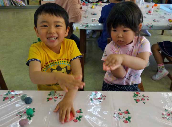 「小 麦 粉 粘 土」で あ そ ぶ 園 児 た ち (4)