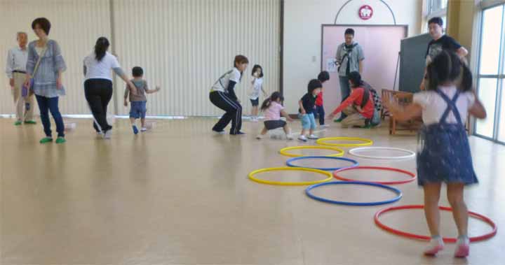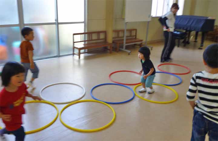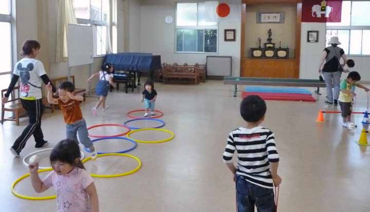 講 堂 で「体 育 あ そ び」を す る 園 児 た ち (3)