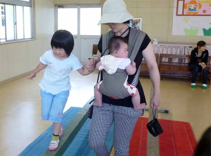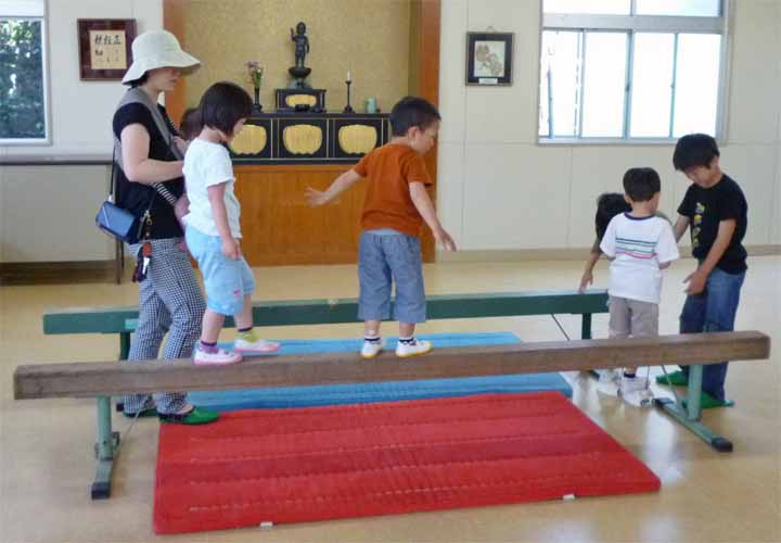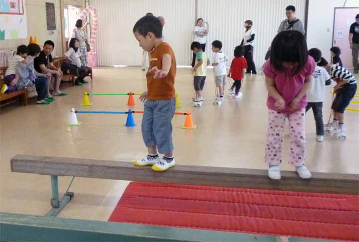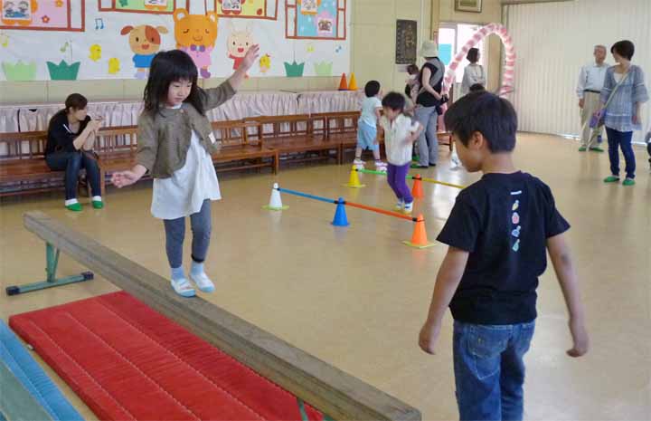 講 堂 で「体 育 あ そ び」を す る 園 児 た ち (6)