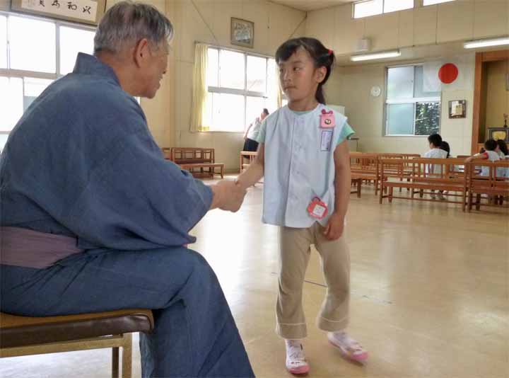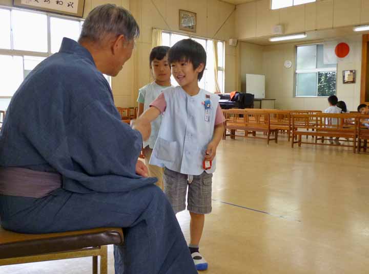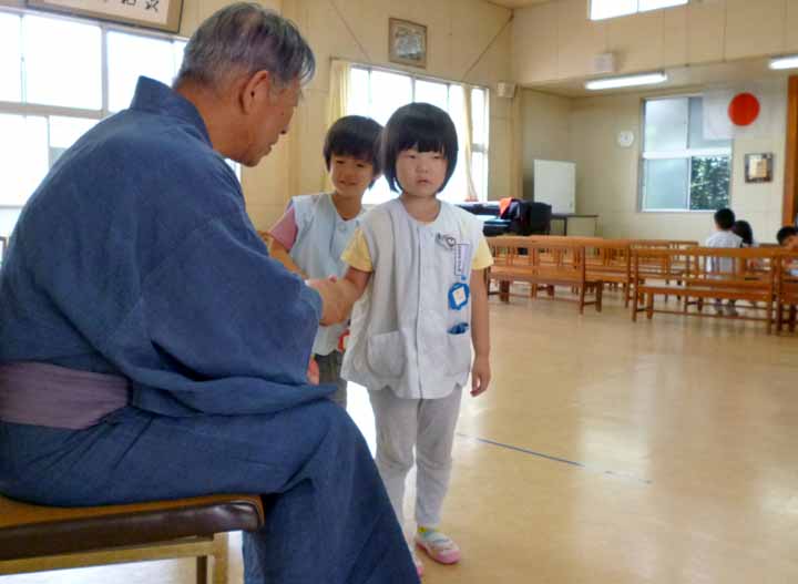 式典が終わり 園長と握手して教室へ戻る園児たち(年 中)(4)