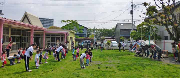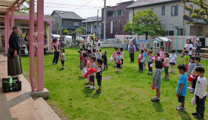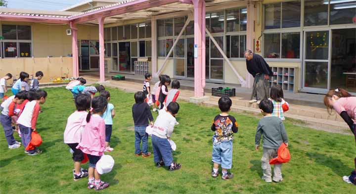 保 護 者 の 皆 さ ん と 朝 の あ い さ つ