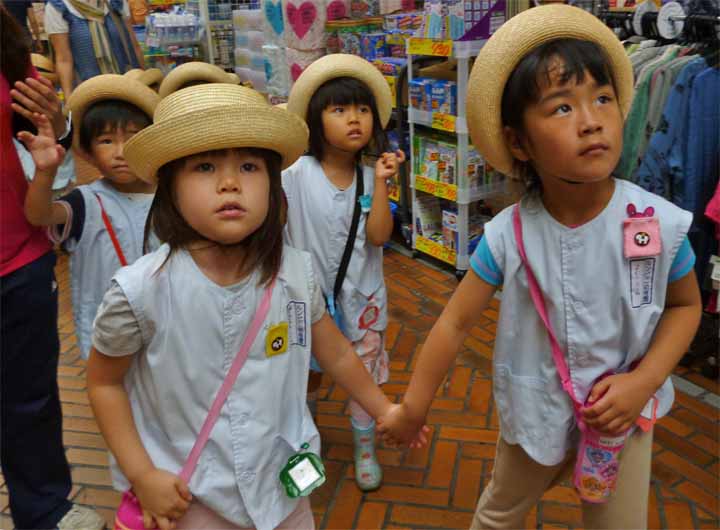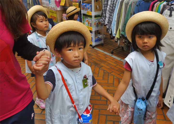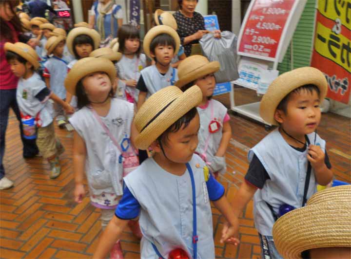 仲見世商店街の七夕飾りを見る 園児たち(7)