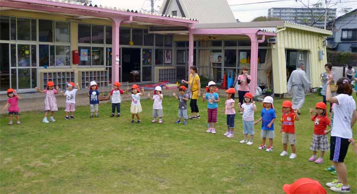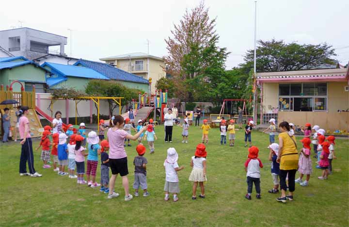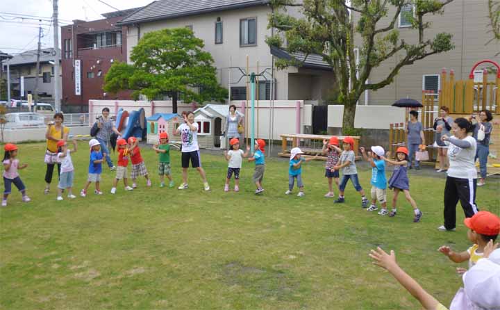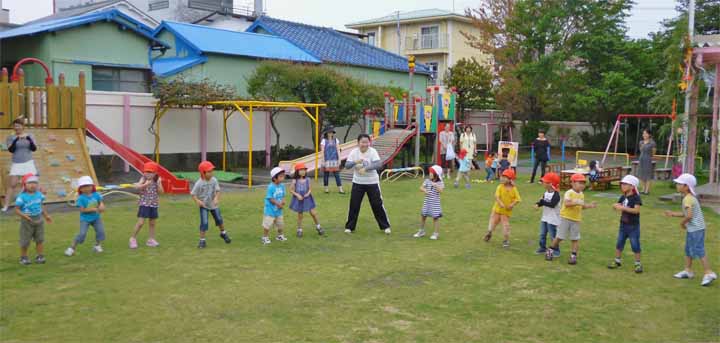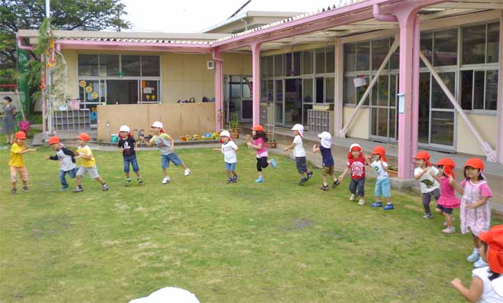園 庭 で 七 夕 の 遊 戯 を す る 園 児 た ち(3)