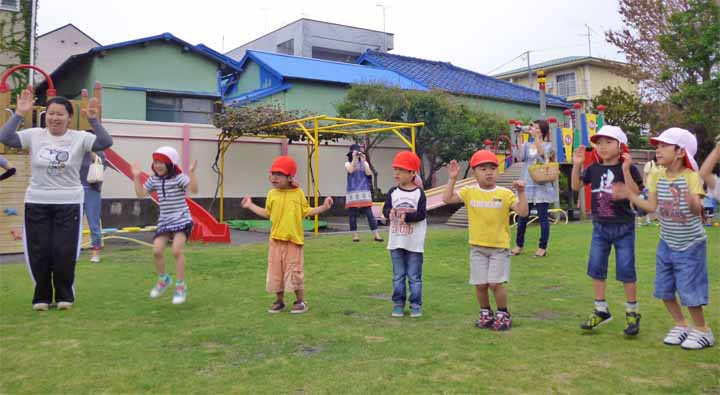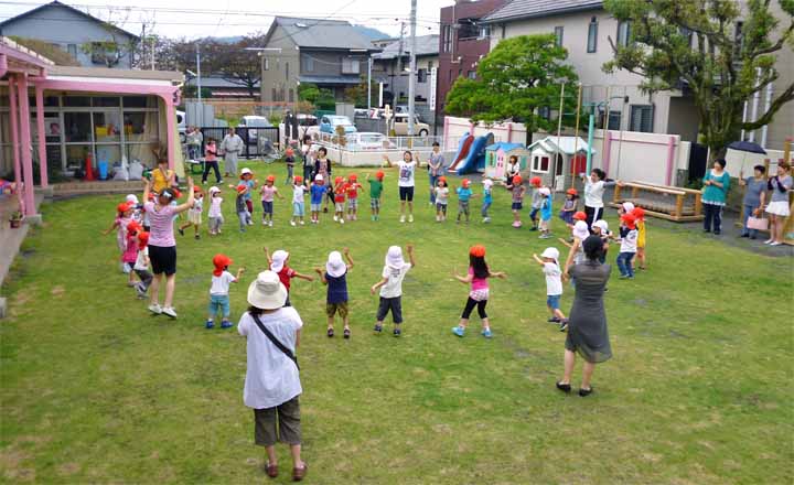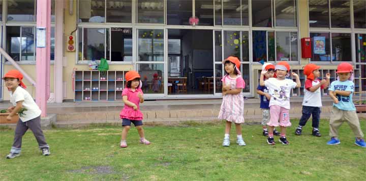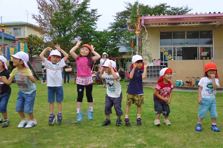 園 庭 で 七 夕 の 遊 戯 を す る 園 児 た ち(4)