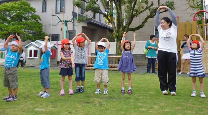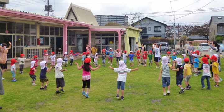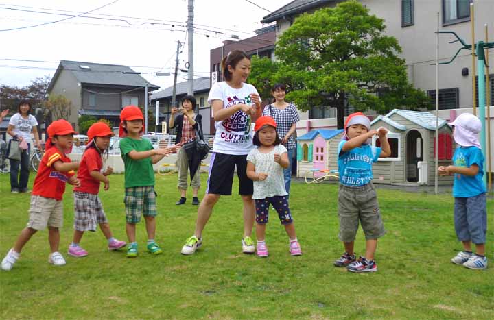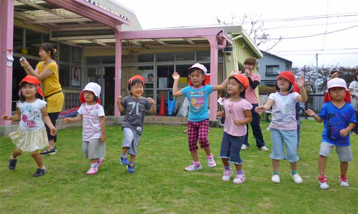 園 庭 で 七 夕 の 遊 戯 を す る 園 児 た ち(5)
