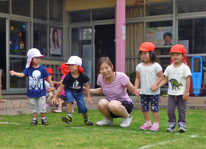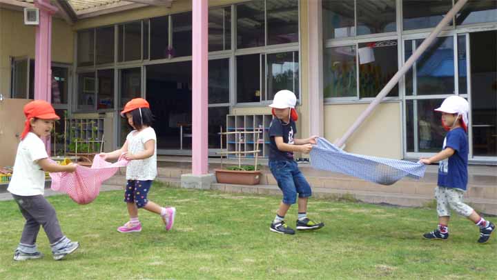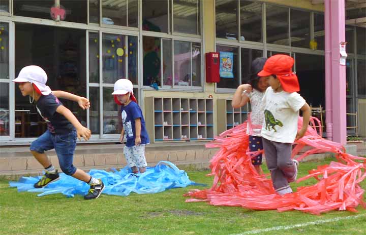 園庭で七夕あそびをする 園児たち(3)