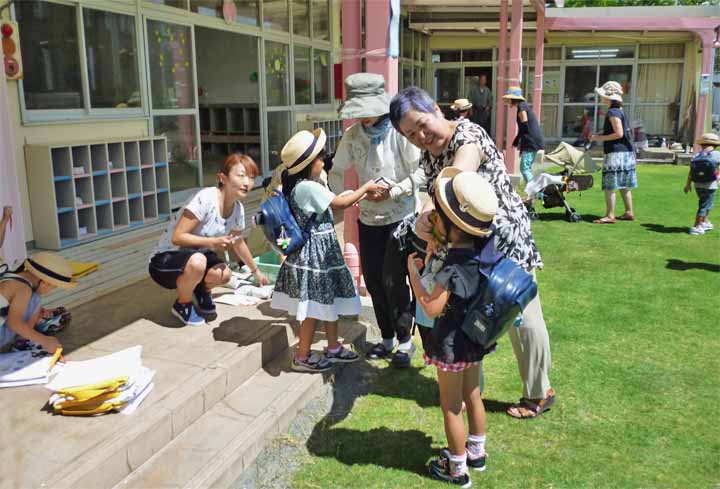 災害時を想定し 親御さんに迎えに来てもらう引き渡しの訓練の様子