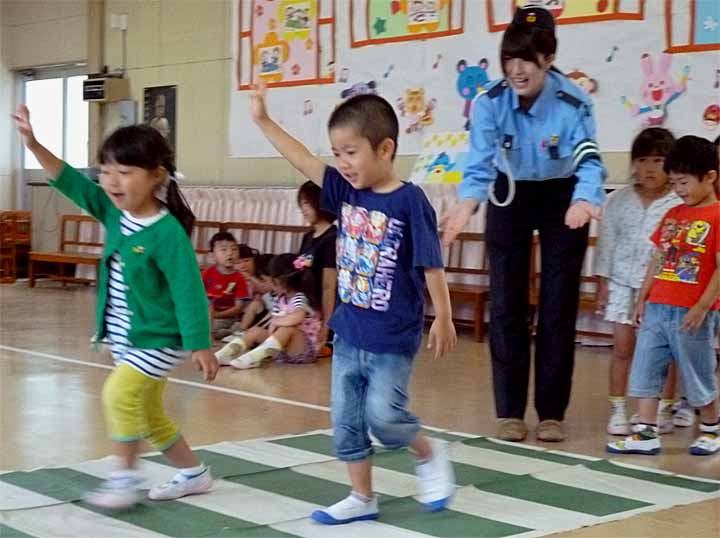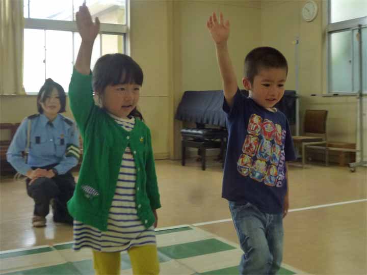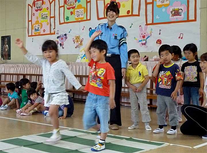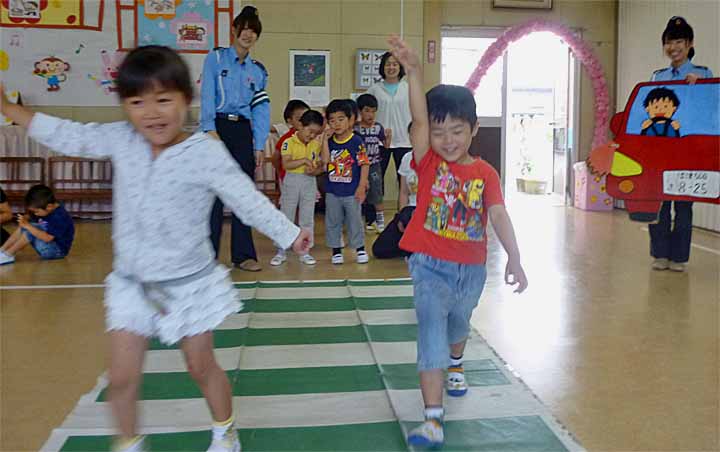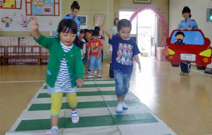 園庭で道路の横断練習をする 園児たち(年 中・年 少)(4)