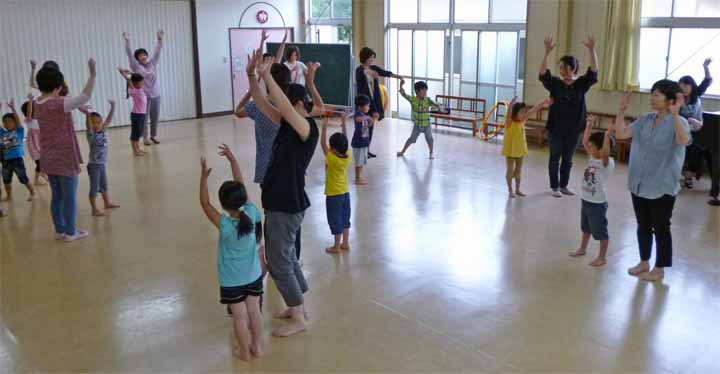リトミックをする 園児たちと保護者の皆さん(年 長)(4)