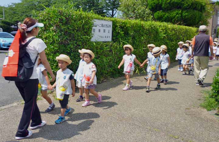 園を出発して 仲見世商店街に向かう園児たち(3)